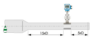若传感器安装点的上游有大于>15。渐缩管,则:上游直管段≥15D,下游直管段≥5D