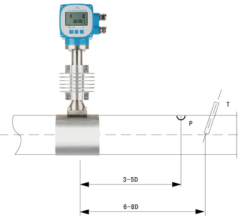 根据测量的需要,需在传感器附近测量压力和温度时,测压点应在传感器下游的3-5D处,测温点应在传感器下游的6-8D处。